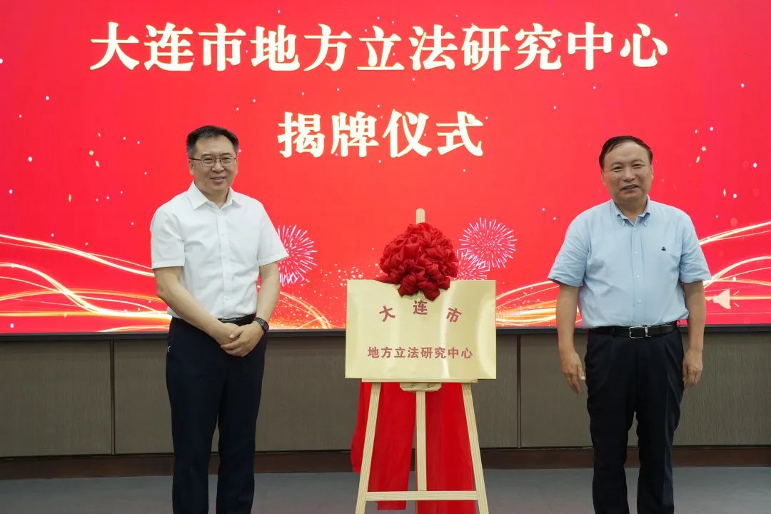王启尧和郑少南共同为大连市地方立法研究中心揭牌。