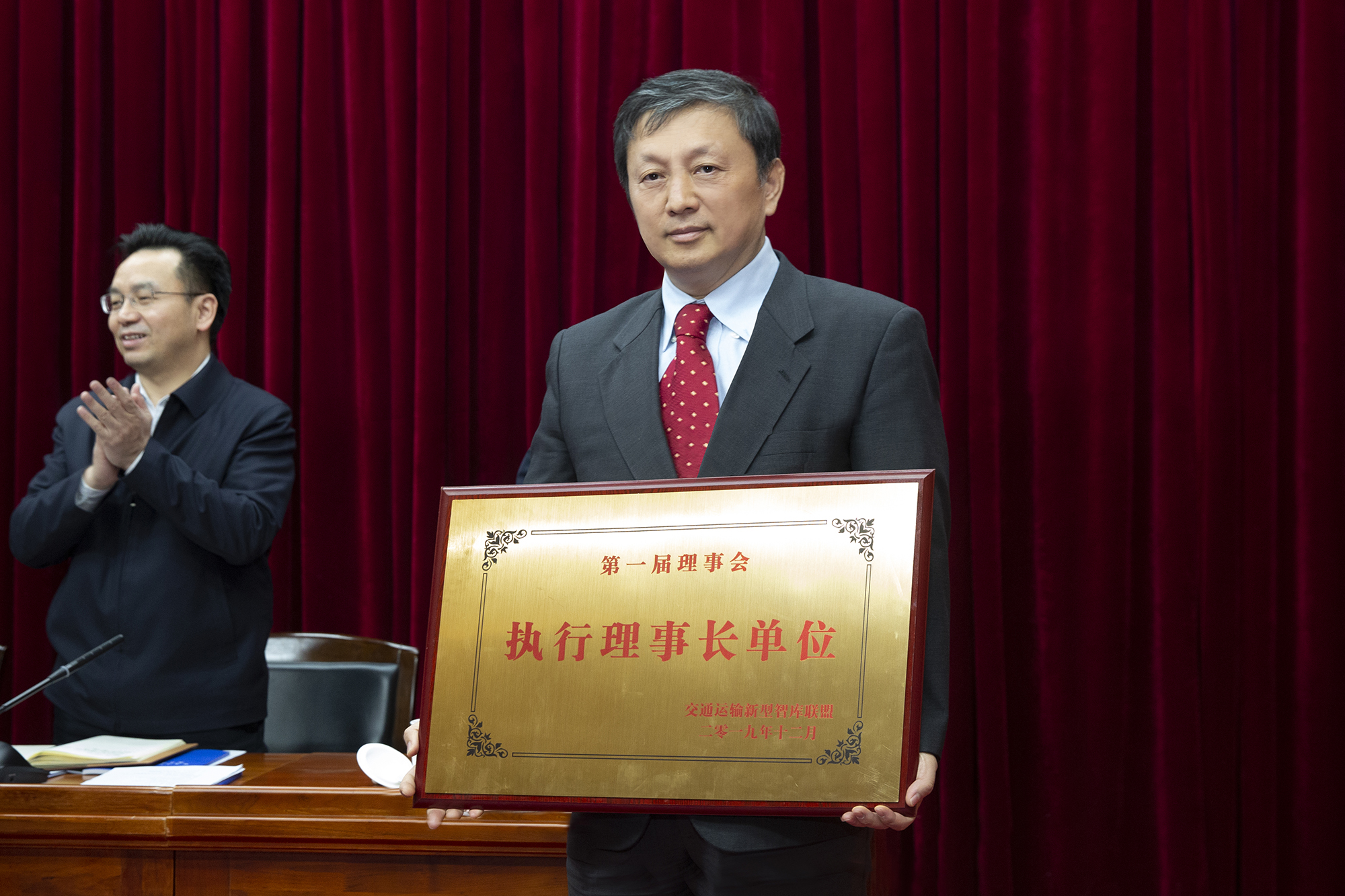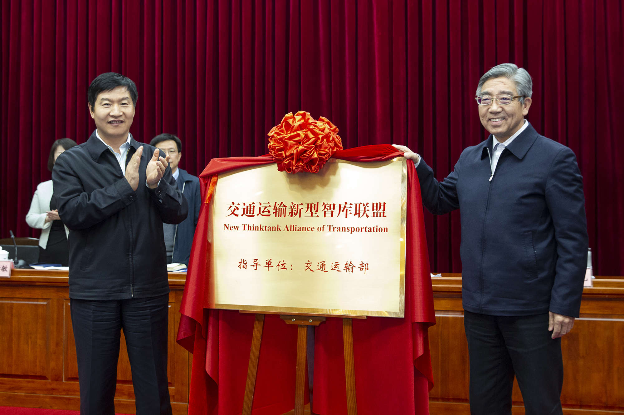 会上,副部长刘小明与中国工程院院士郑健龙共同为联盟成立揭牌。交通运输部政策研究室主任吴春耕通报了联盟筹建情况,交通运输部人事教育司副司长时骏宣读了联盟第一批成员单位名单。大会确定郑健龙为联盟第一届理事长,大连海事大学为联盟执行理事长单位和秘书处单位,顾问单位3家、副理事长单位9家、理事单位20家。