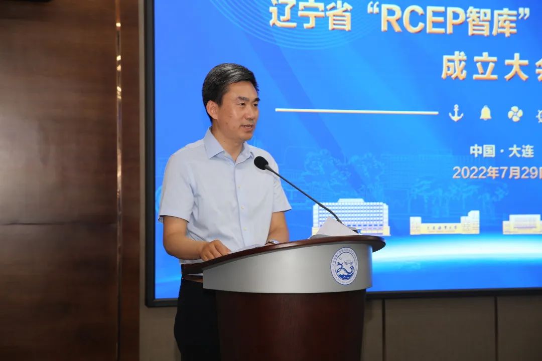 7月29日,辽宁省“RCEP智库”研究与促进中心成立大会在我校举行。辽宁省政协党组副书记、副主席、辽宁省“RCEP智库”专家委员会首席专家戴玉林,中国国际贸易促进委员会辽宁省分会党组书记、会长庞宝国,大连海事大学党委书记郑少南,辽宁省政研室副主任赵治山,大连市科学技术协会党组书记杨代刚,中国国际贸易促进委员会大连市分会会长孙连运,大连市高新园区党工委副书记、管委会副主任孙龙业以及辽宁商务厅、大连自贸片区管委会、辽宁省“RCEP智库”专家委员会部分委员等有关领导和专家出席会议。