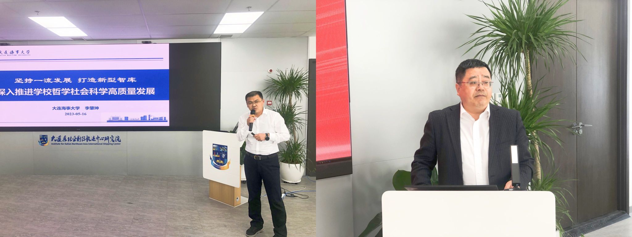 我校人文社科研究院院长李肇坤代表高校科研处发言。他以“坚持一流发展 打造新型智库,深入推进学校哲学社会科学高质量发展”为主题,从我校人文社科工作总体情况、中国特色新型智库的有关认识以及推进智库建设的工作思路三个方面进行经验交流。他说海大立足点始终是航运特色领域,聚焦海洋、交通、区域、国际治理、地方发展重大需求,建设海洋领域高端智库、交通科技创新服务平台以及高层次航运人才培养高地。将持续不断为辽宁全面振兴新突破大连三年行动贡献海大力量。
