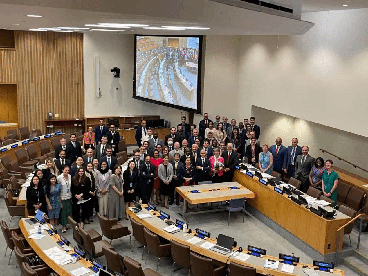 2022年7月,朱作贤教授参加联合国贸易法委员会第55届年会,线上见证会议完成《北京船舶司法出售公约》文本审议工作。