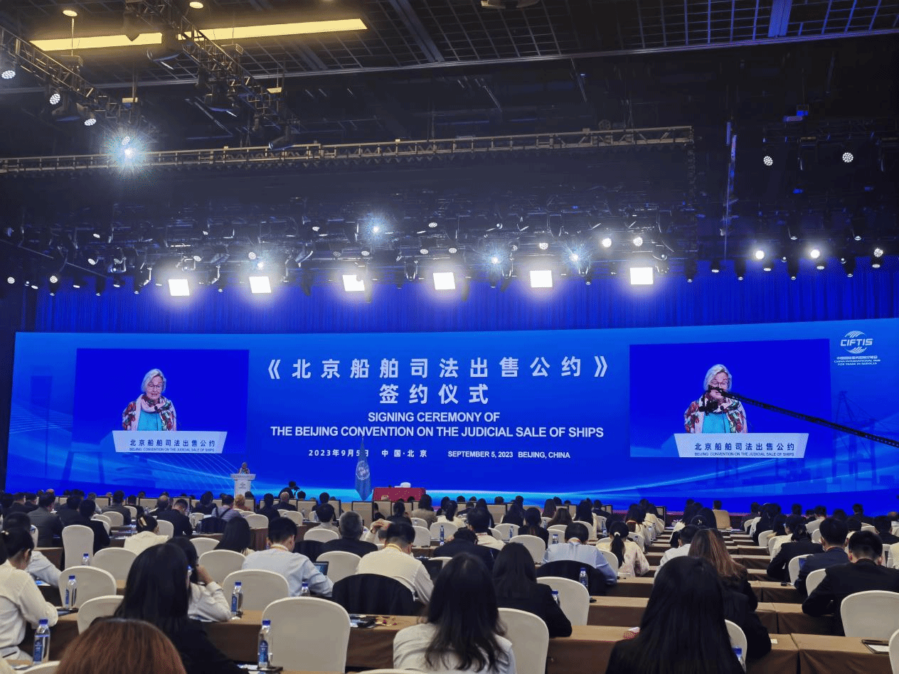 9月5日,《北京船舶司法出售公约》签约仪式在京举行。《北京船舶司法出售公约》是海商领域首个以中国城市命名的联合国公约,填补了船舶司法出售国际效力领域的法律空白。最高人民法院审判委员会副部级专职委员王淑梅、联合国国际贸易法委员会秘书长安娜·乔宾·布莱特等出席签约仪式并致辞。