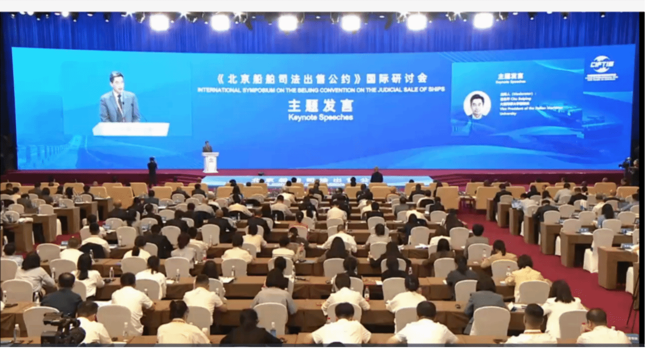 《北京船舶司法出售公约》国际研讨会于当日下午召开,研讨会由中华人民共和国最高人民法院、联合国国际贸易法委员会主办,中国海商法协会、大连海事大学协办,最高人民法院审判委员会专职委员王淑梅、联合国国际贸易法委员会秘书长安娜·乔宾·布莱特、中国法学会副会长兼秘书长张鸣起、中国国际贸易促进委员会副会长于健龙出席会议并致辞。