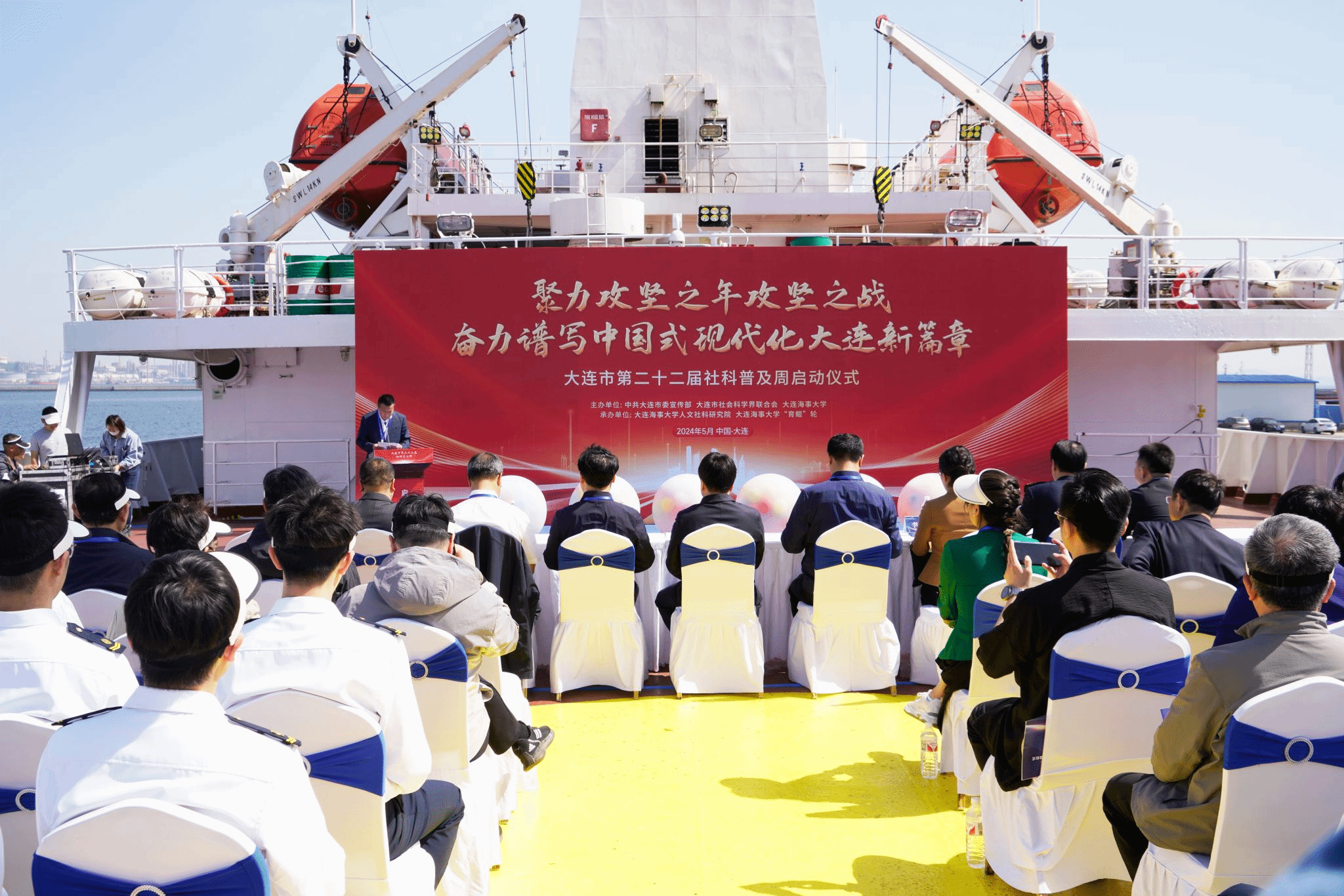 5月13日上午,大连市“第二十二届社会科学普及周”启动仪式在我校“育鲲”轮举行。启动仪式由大连市委宣传部、大连市社会科学界联合会和大连海事大学共同主办,大连海事大学人文社科研究院承办。本次社会科学普及周的主题是“聚力攻坚之年攻坚之战 奋力谱写中国式现代化大连新篇章”。
