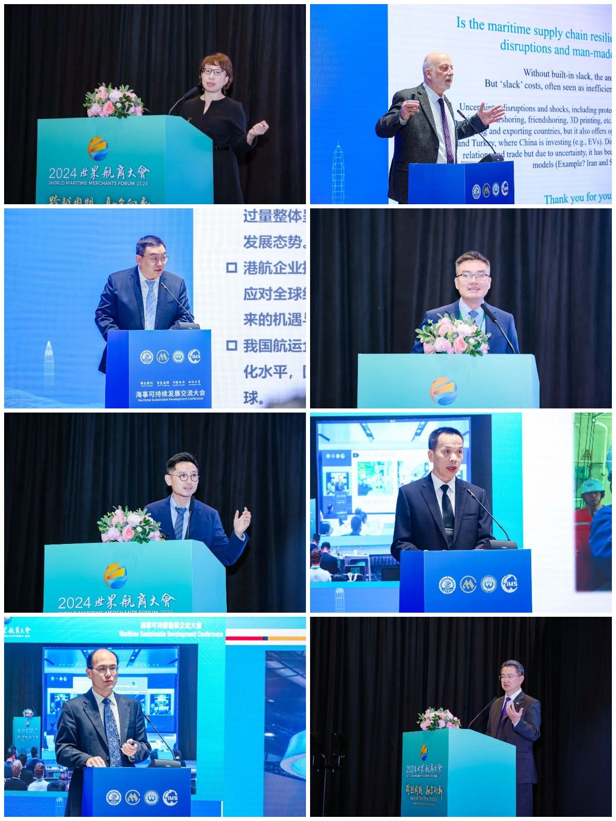 本届大会以“绿色航运、智慧港航、创新合作、知识共享”为主题,邀请到英国交通部首席科学家、伦敦大学学院(UCL)时空智能实验室创始人、主任程涛,《Maritime Economics & Logistics》主编、国际海运经济学家协会(IAME)前副主席、荷兰鹿特丹大学教授Hercules Haralambides,交通运输部水运科学研究院副院长冯,中国船级社武汉规范研究所所长甘少炜,香港理工大学海事数据与可持续发展中心主任杨冬,深圳海事局党组成员、副局长郭秀斌,中国国际可持续交通创新和知识中心副主任谢辉,大连海事大学校长单红军等嘉宾分别以《时空人工智能赋能全球海事可持续发展》《不确定经济周期下的海运和港口》《关于打造可持续发展的全球物流供应链的思考》《航运减排呼唤绿色燃料和先进动力》《绿色走廊视角下的港口减碳:新能源赋能低碳航运》《以高质量海事服务助力航运可持续发展》《协同创新国际合作 推进航运可持续发展》《<中华人民共和国海商法>修订最新进展》为题发表演讲,并进行展望和研判。