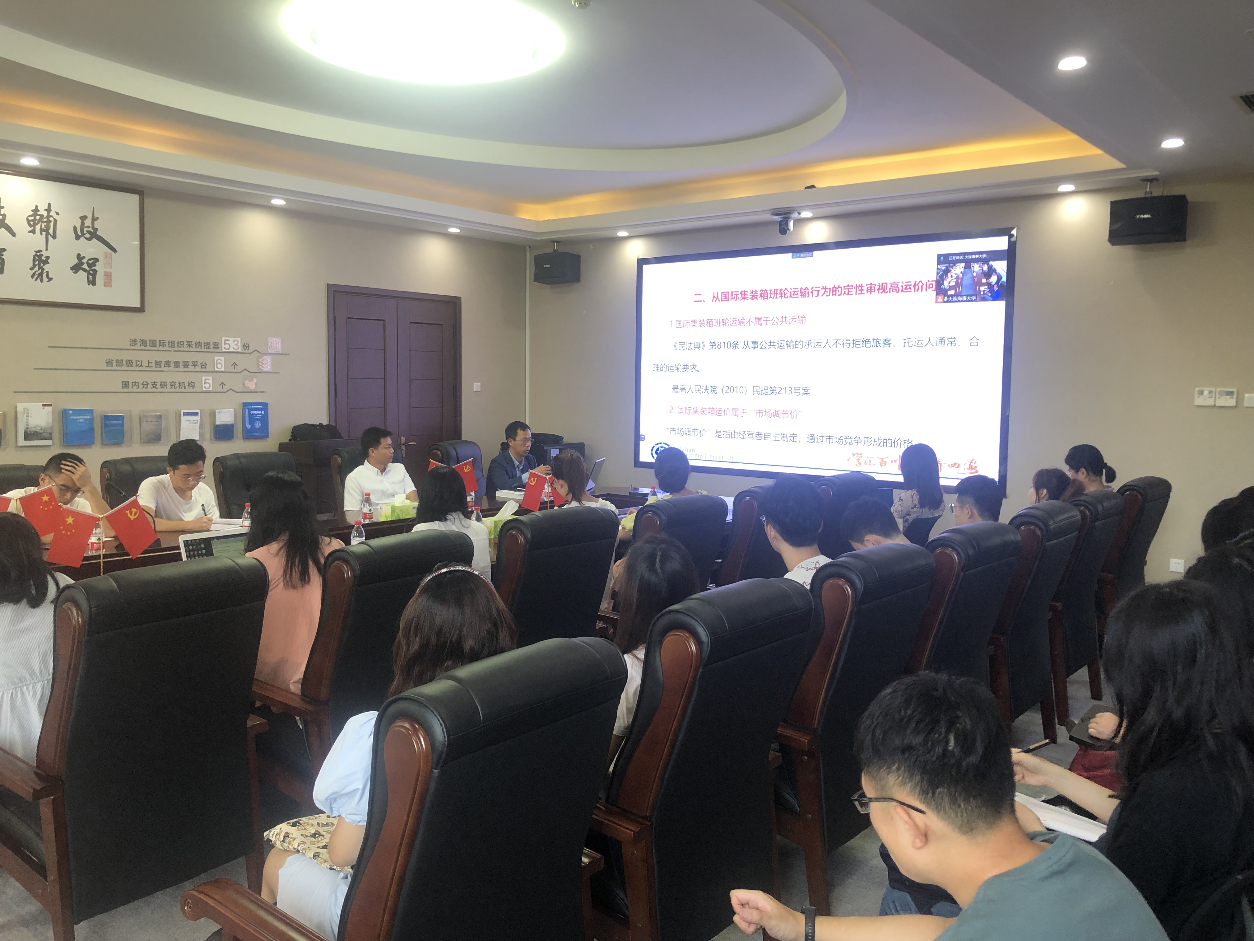 9月14日上午,我校2021年第二期浩海沙龙“理性审视国际集装箱海运市场的高运价问题”与第三期浩海沙龙“低碳航运2050:路径与挑战”在湖畔书屋三楼成功举办。两期沙龙分别由法学院副院长兼海商法系主任、“浩海工程”第一层次海事智库首席专家人选朱作贤教授和无限航区大管轮World Maritime University、Queen's University Belfast访问学者、“浩海工程”第三层次培养人选邢辉副教授主讲。