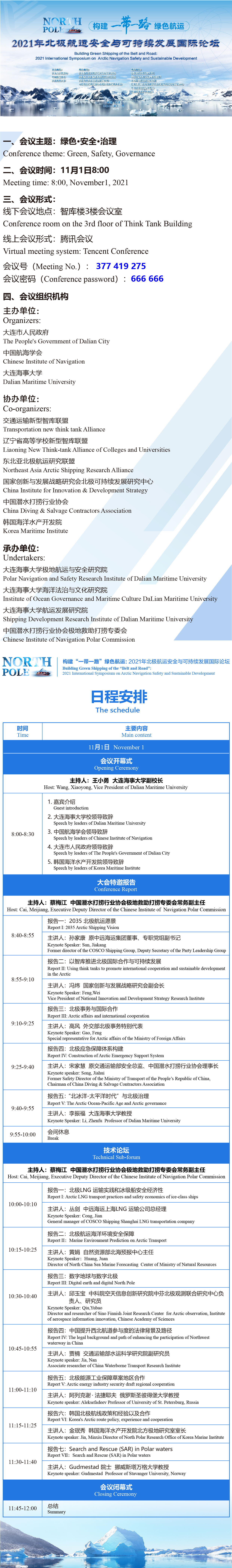 为进一步提升学术影响力,打造北极领域高端交流平台,经交通运输部批准,定于2021年111日在我校举办“构建‘一带一路’绿色航运:2021年北极航运安全与可持续发展国际论坛”。论坛以“绿色·安全·治理”为主题,采用“线上+线下”相结合形式进行,重点围绕北极可持续发展、北极事务与国际合作、北极航行安全、北极治理等方面开展学术交流。